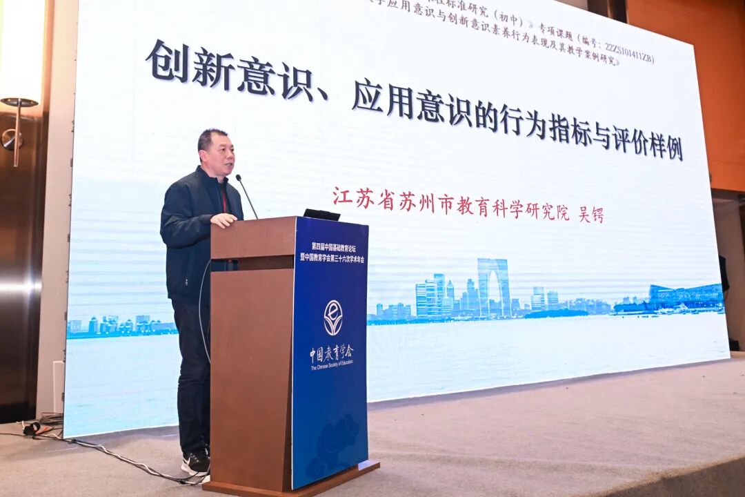 11月30日至12月1日,第四届中国基础教育论坛暨中国教育学会第三十六次学术年会在天津举办。12月1日上午,中国教育学会中学数学教学专业委员会组织承办了“中学数学核心素养行为表现指标体系统领的教学及评价”学科分论坛。核心素养是近十年我国基础教育课程教学改革出现频率最高的词汇之一。发展学生学科核心素养是各门学科的课程目标。2022年版义务教育数学课程标准把学生数学核心素养凝练为“三会”及其初中阶段的九大主要表现:会用数学的眼光观察现实世界——抽象能力、几何直观、空间观念、创新意识;会用数学的思维思考现实世界——推理能力、运算能力;会用数学的语言表达现实世界——模型观念、数据观念、应用意识。本分论坛以中国教育学会中学数学教学专业委员会承担组织的中国教育学会“义务教育数学课程标准研究专项课题 (初中)”中的“数学核心素养行为表现及其教学案例研究”的成果为载体,总结凝练中学数学课程教学改革取得的成就与经验,展示重要的学术成果与实践探索。包括建构核心素养在中学数学课程中行为表现指标体系;探讨以核心素养行为指标为依据的单元教学设计、教学评价;聚焦推理能力、模型观念、应用意识、创新意识等核心素养的主要表现,结合大量具体、鲜活的样例,给出课堂教学中落实核心素养的策略、方法和具体路径,把学生数学核心素养向深处推进、向细处落实。鲍建生